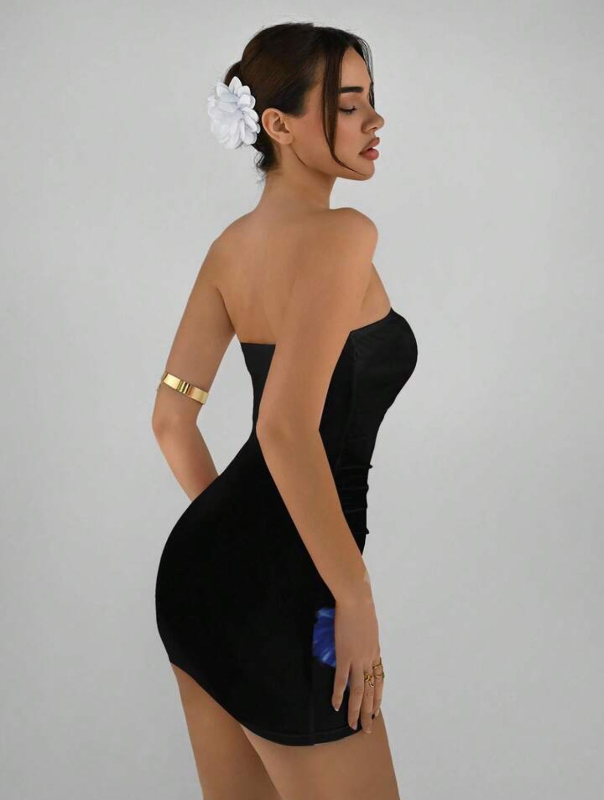 Aloruh Women's Casual Strapless Fitted Mini Graphic Dress