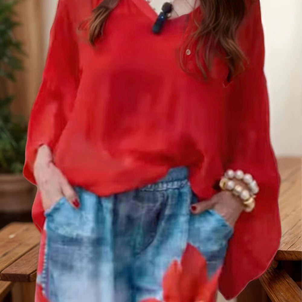 To those who like V-neck, enjoy comfort in style with our Women's Flour pants, designed for the modern woman who values both style and comfort. Features a chic ethnic design that effortlessly transitions from casual outings to high street fashion. The loose fit and lightweight fabric ensure all-day comfort, making it a versatile addition to your collection. Pair it with jeans or a skirt for a polished look that turns heads. Don't miss out on this essential piece that combines elegance with ease.