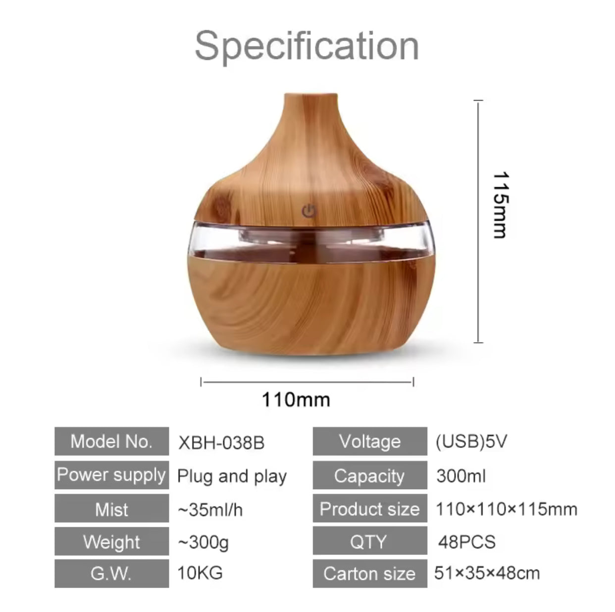 Humidifier Electric Aroma Air Diffuser Wood Ultrasonic Air Humidifier Essential Oil Aromatherapy Cool Mist Maker For Home 300ml