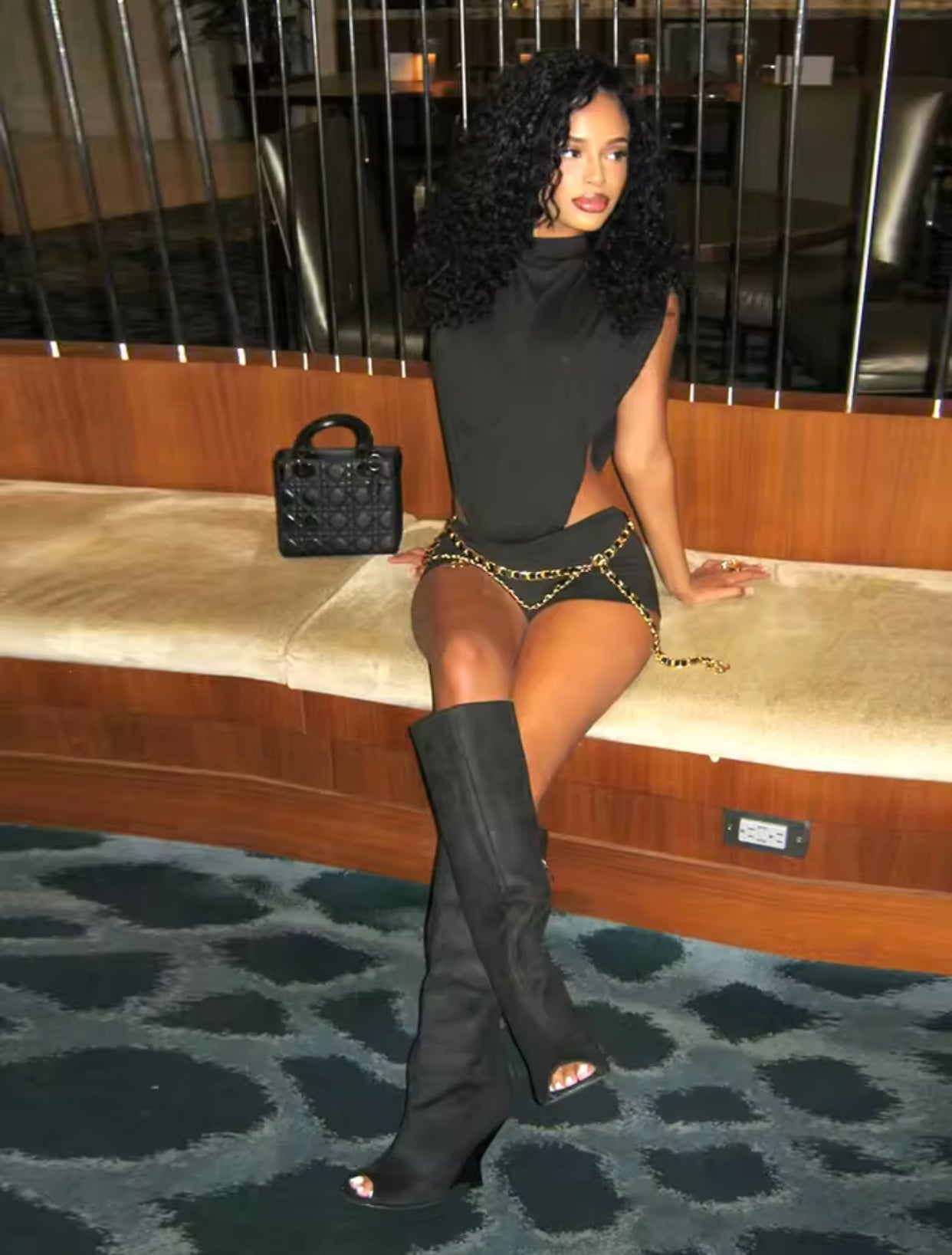 Nibber Stretch Coquette Women 2 Piece Set hipster Sexy Ruched Shoulder Side Split Bodysuit+Shorts Matching Midnight Clubwear
