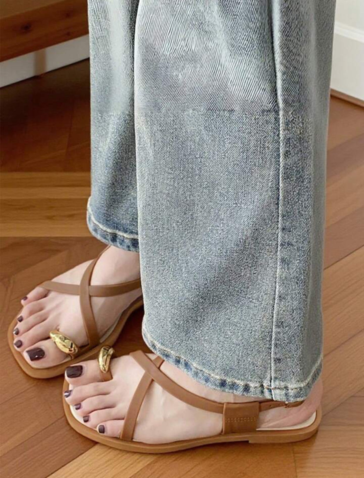 Women's Flat Sandals, Metallic Elegant Party V acation Avant-Garde Fashion Basic Casual Beach Cute F airy Wedding Outdoor Sexy Chinese Style Gorgeous Stre et Cute Comfortable PVC Women's Sandals With Buckle Criss-Cross Flat Sandals For Beach, Holiday, Wedding, School, Office, Home, Outdoor, Summer